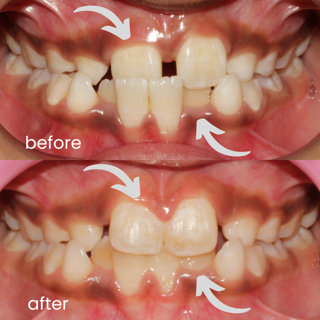 - Myofunctional jaw therapy – To facilitate or restrict undergrowing or overgrowing jaw.