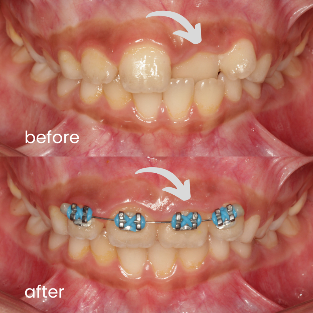 - Braces (2×4 appliance) – to guide the developing mal-alignment of permanent teeth and to create and maintain space for the erupting permanent teeth.